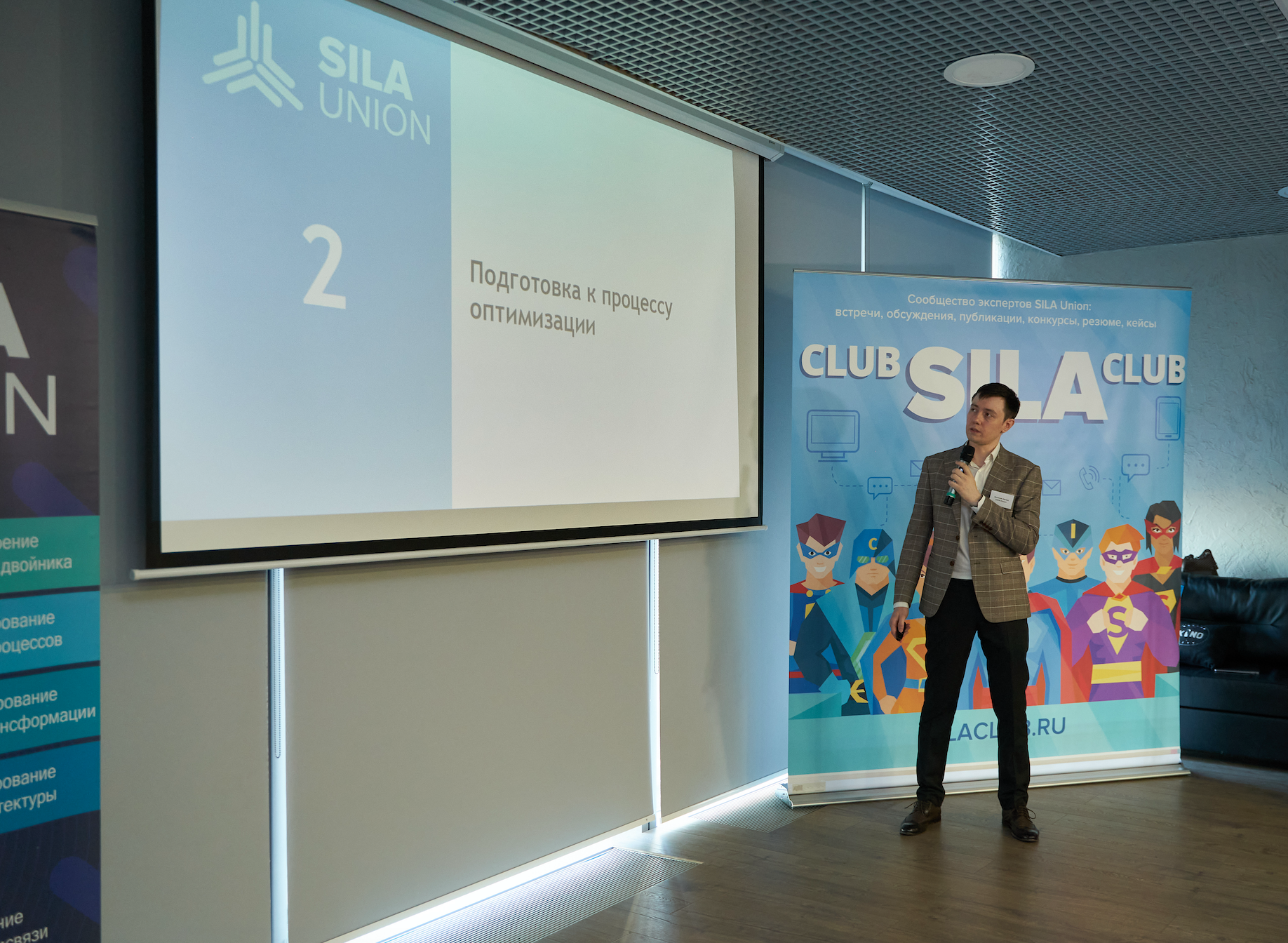 Встречу открыл руководитель направления развития методологии проектного управления СИЛА Юнион Эдуард Ишханов, выступивший с презентацией на тему «Мероприятия по оптимизации ключевых направлений деятельности организации».