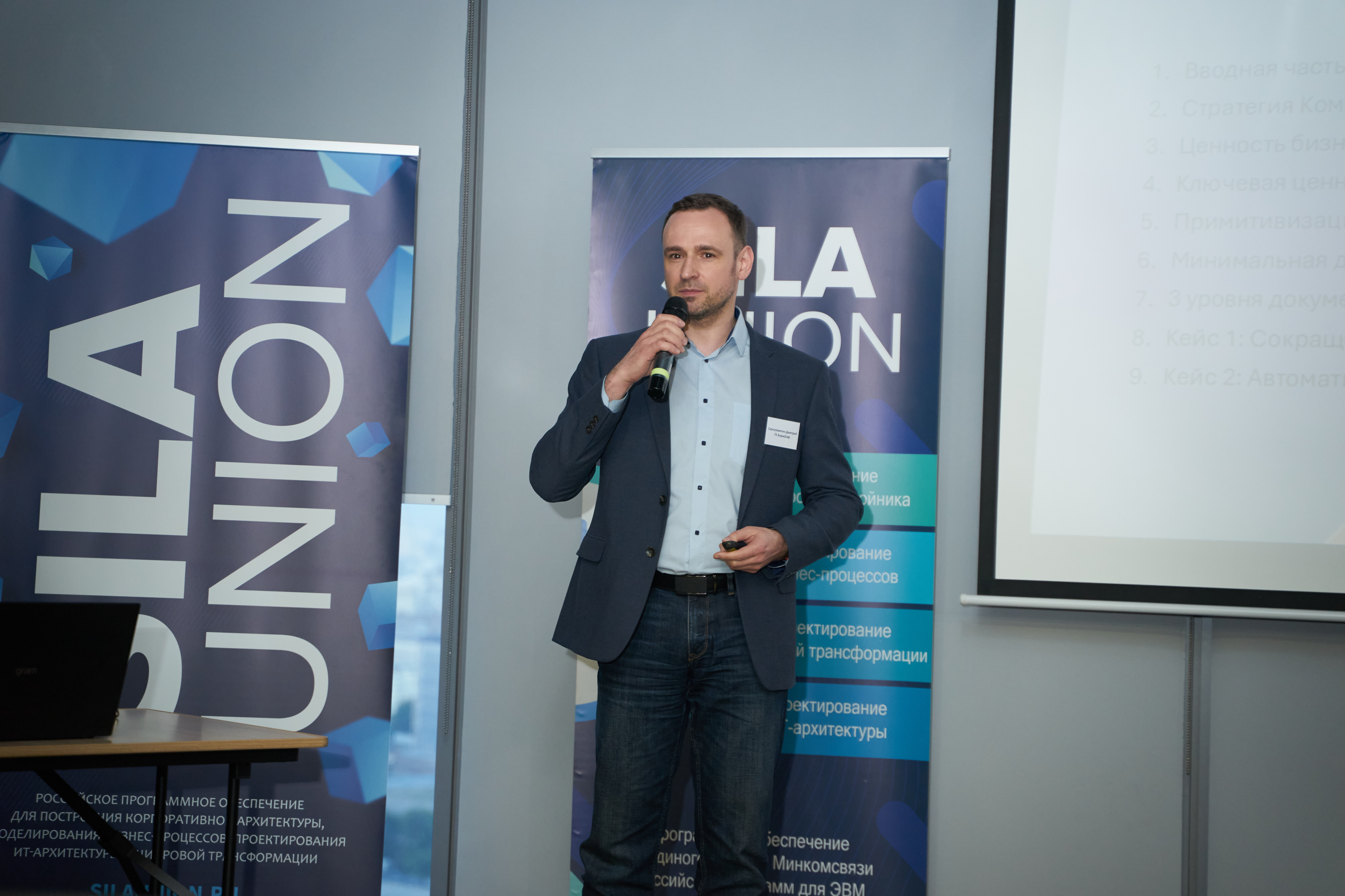 Руководитель направления бизнес-аналитики ГК БорисХоф Дмитрий Серпуховитин завершил вечер презентацией на тему «Пресеты в SILA Union как инструмент повышения ценности бизнес-анализа для “бизнеса”».
